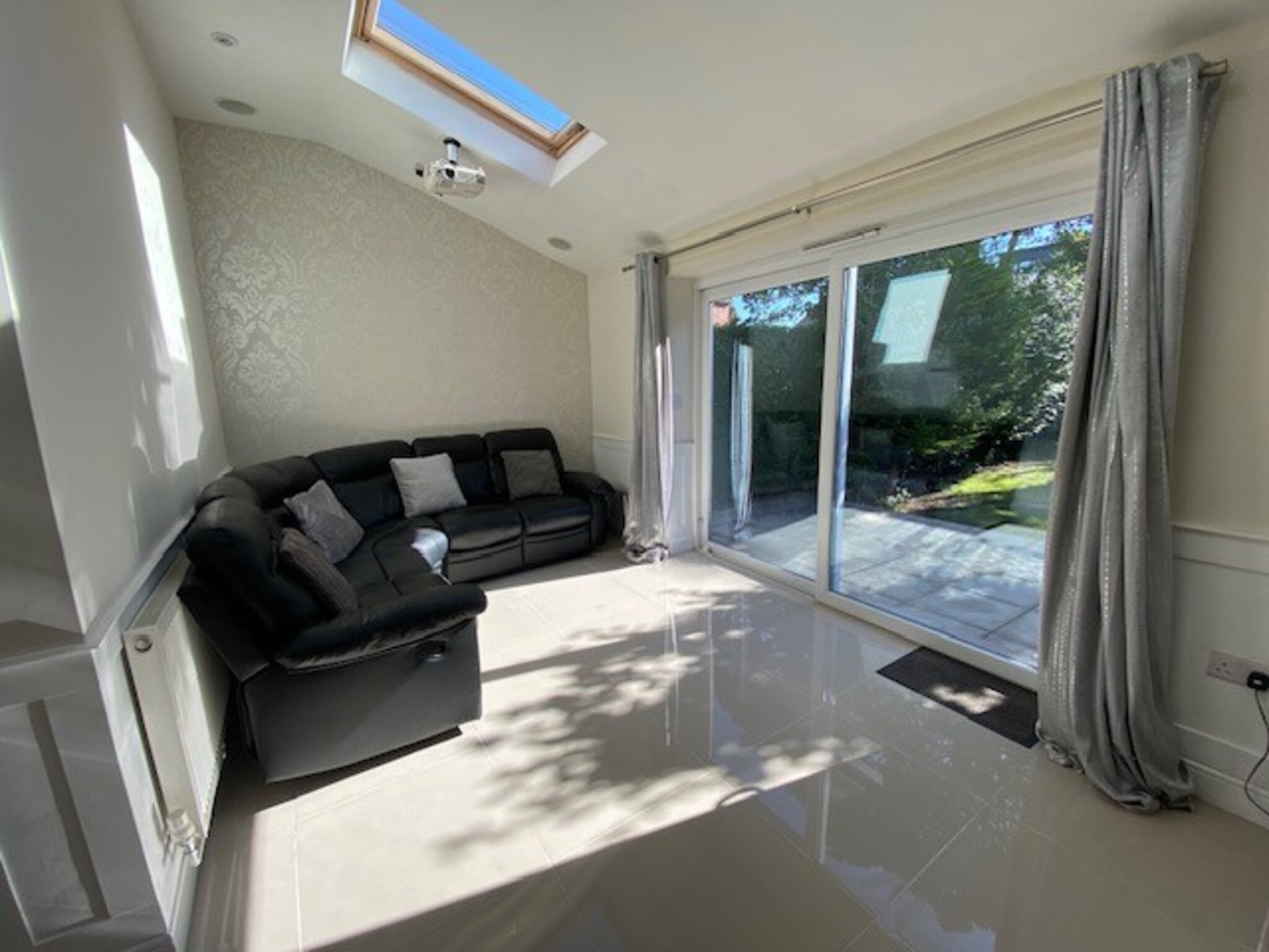 Tiled flooring, two Velux window, radiator, patio doors to the garden