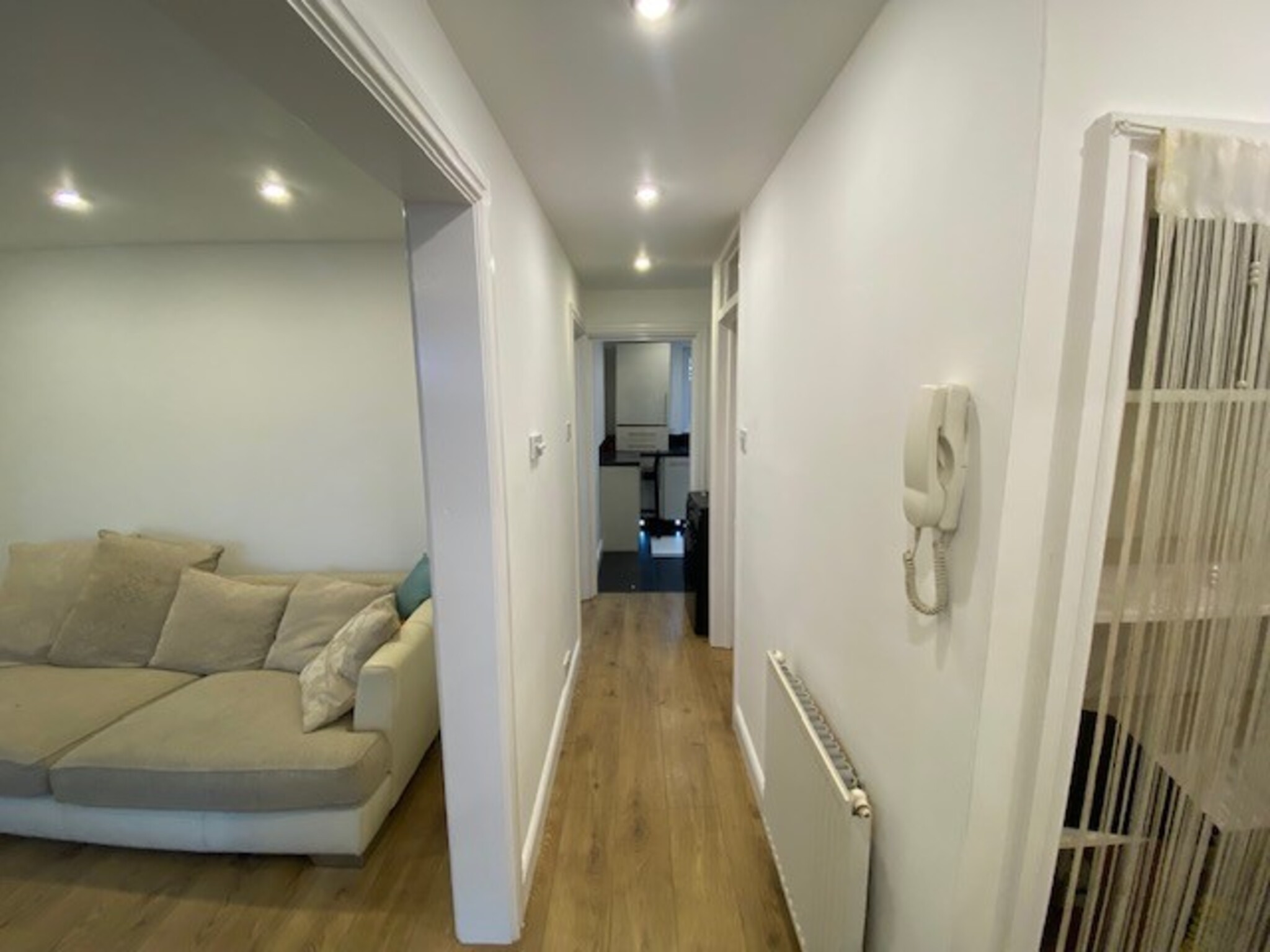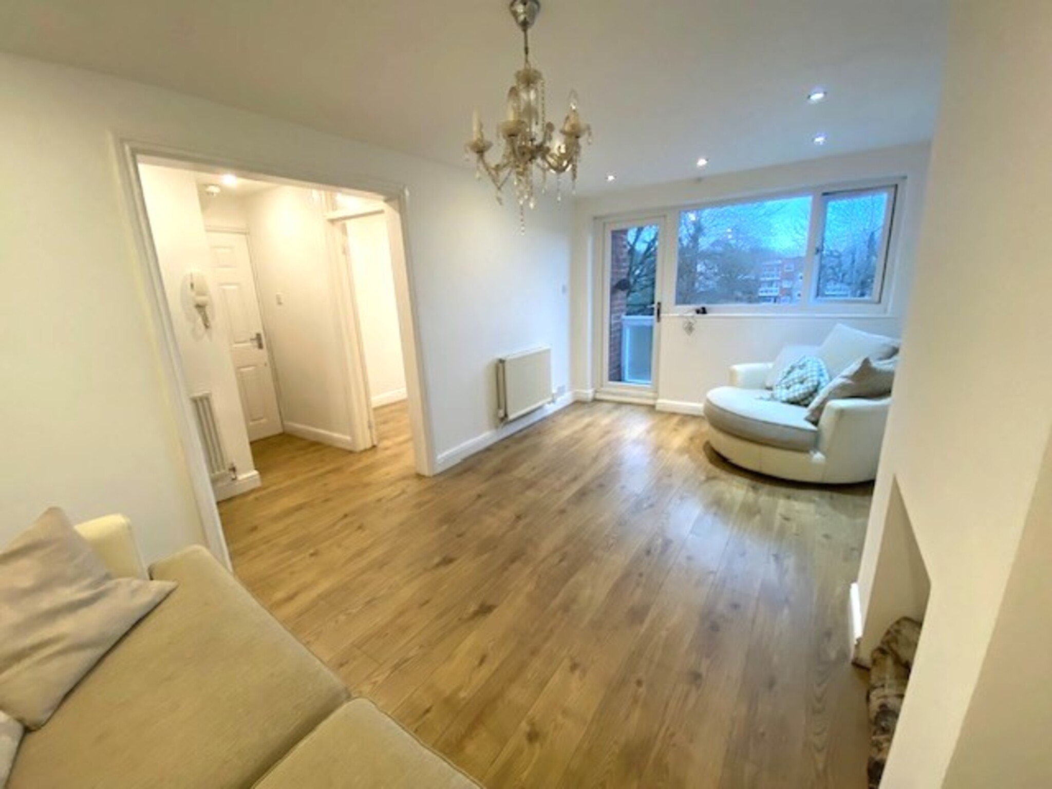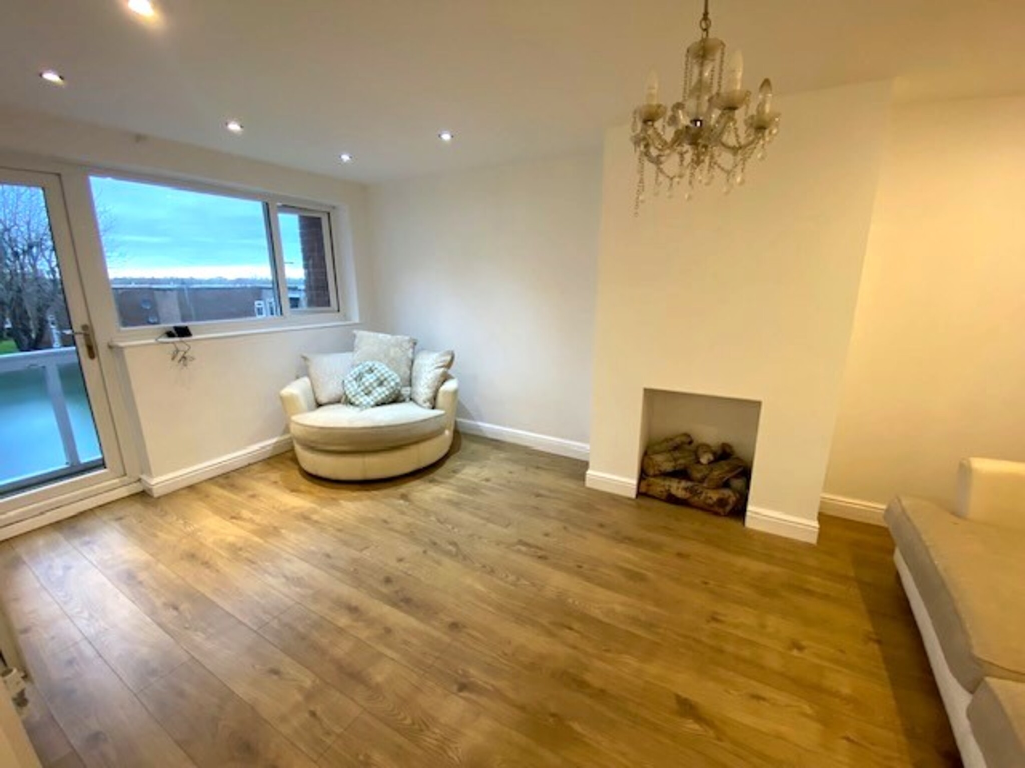 Radiator, spotlights to ceiling, laminate flooring, UPVC door to balcony.