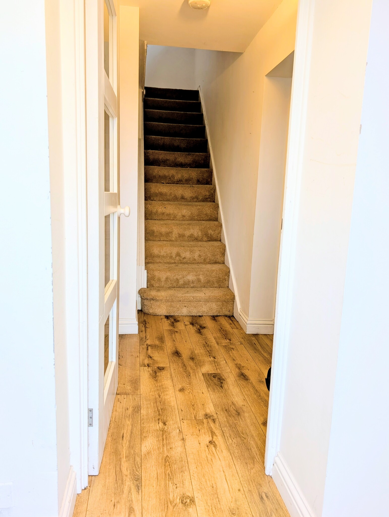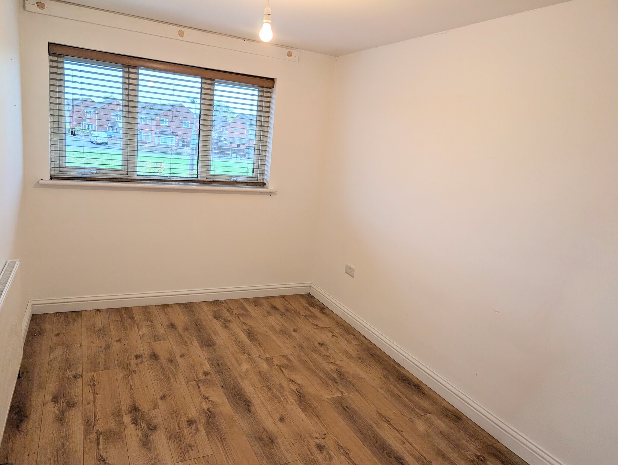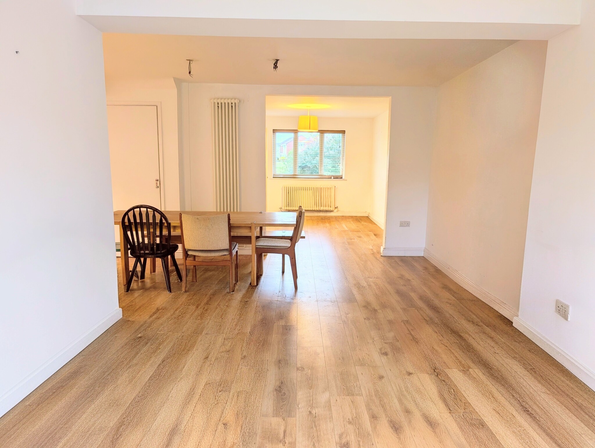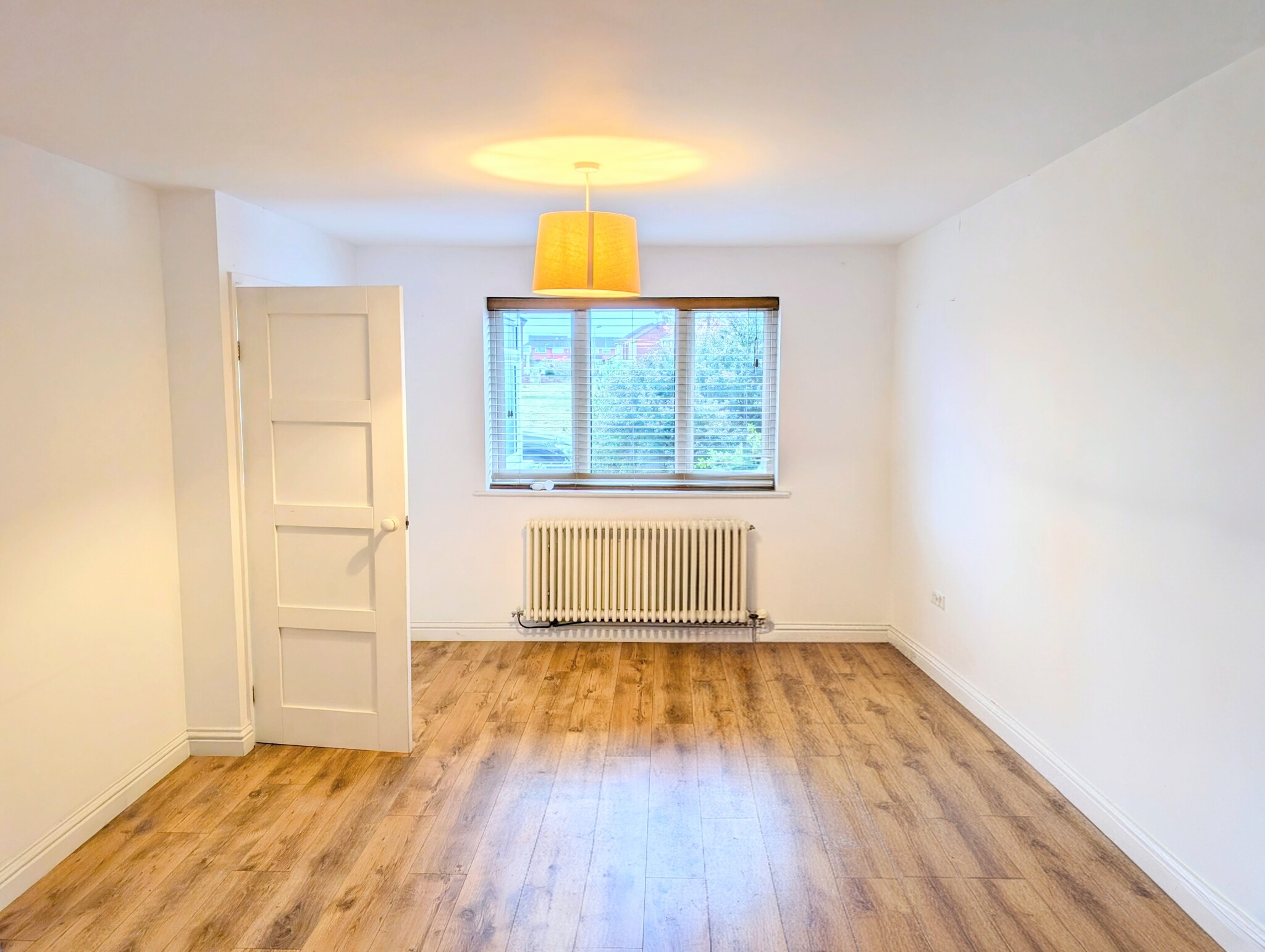 Laminate flooring, radiator, blinds