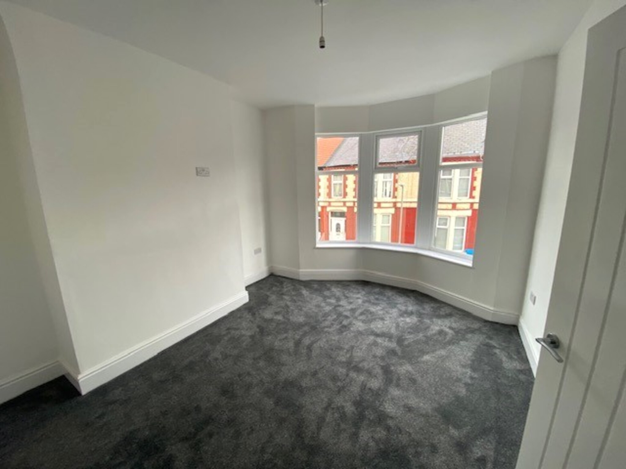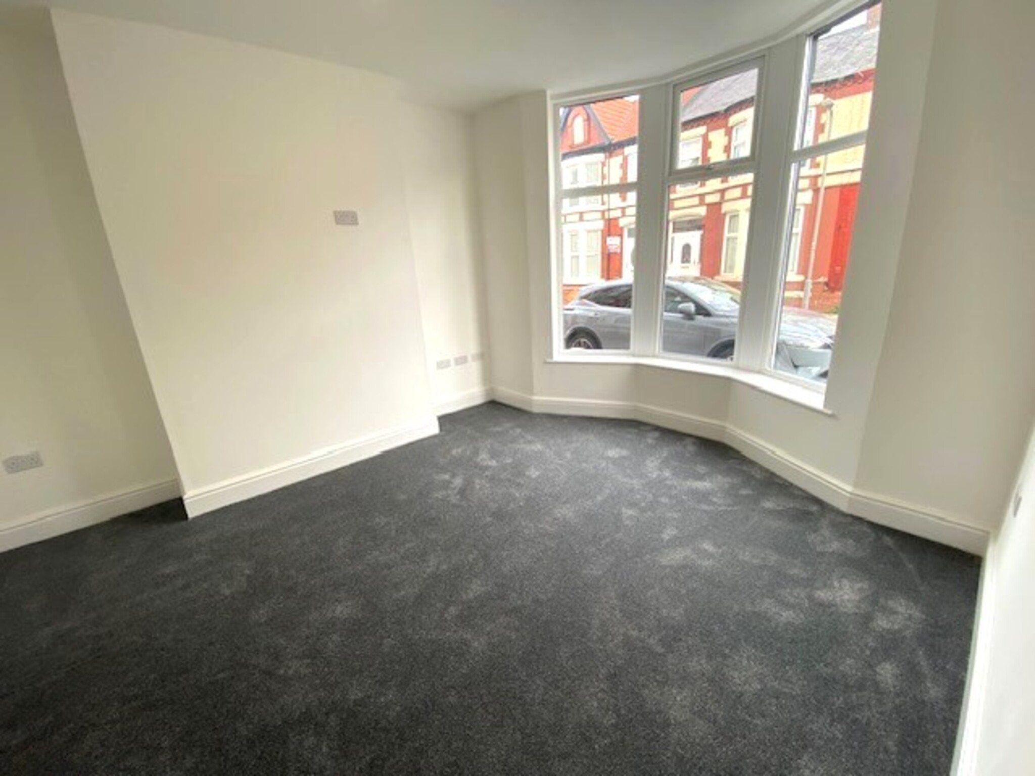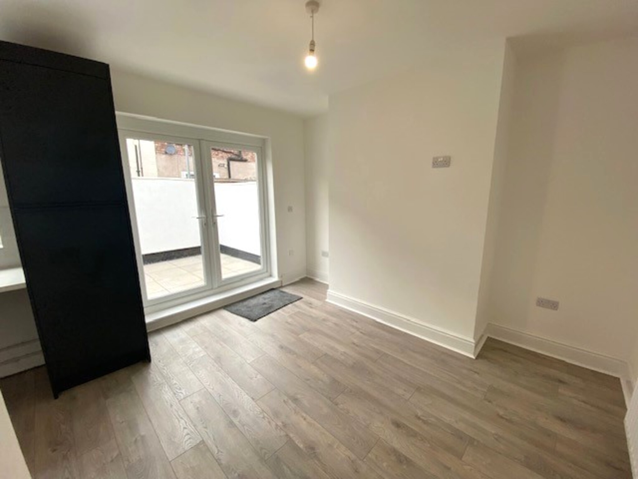 Radiator, laminate flooring, Patio doors leading to rear yard.