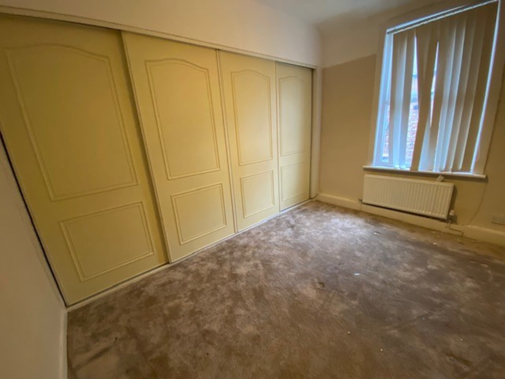 Vestibule with laminate flooring leading to hallway with radiator and laminate flooring, carpet to stairs and landing.